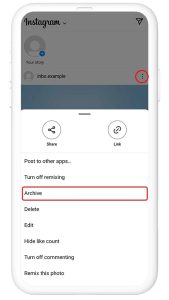 - گزینه “archive” را لمس نمایید تا پست مربوطه در اکانت اینستاگرام شما آرشیو شود.