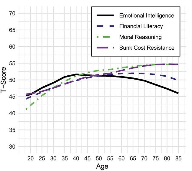 حتی تواناییهایی مانند استدلال اخلاقی و مقاومت در برابر سوگیریهای شناختی (که موجب تصمیمهای نادرست میشوند) تا 70 و حتی 80 سالگی زندگی نیز روبهرشد باقی میمانند.