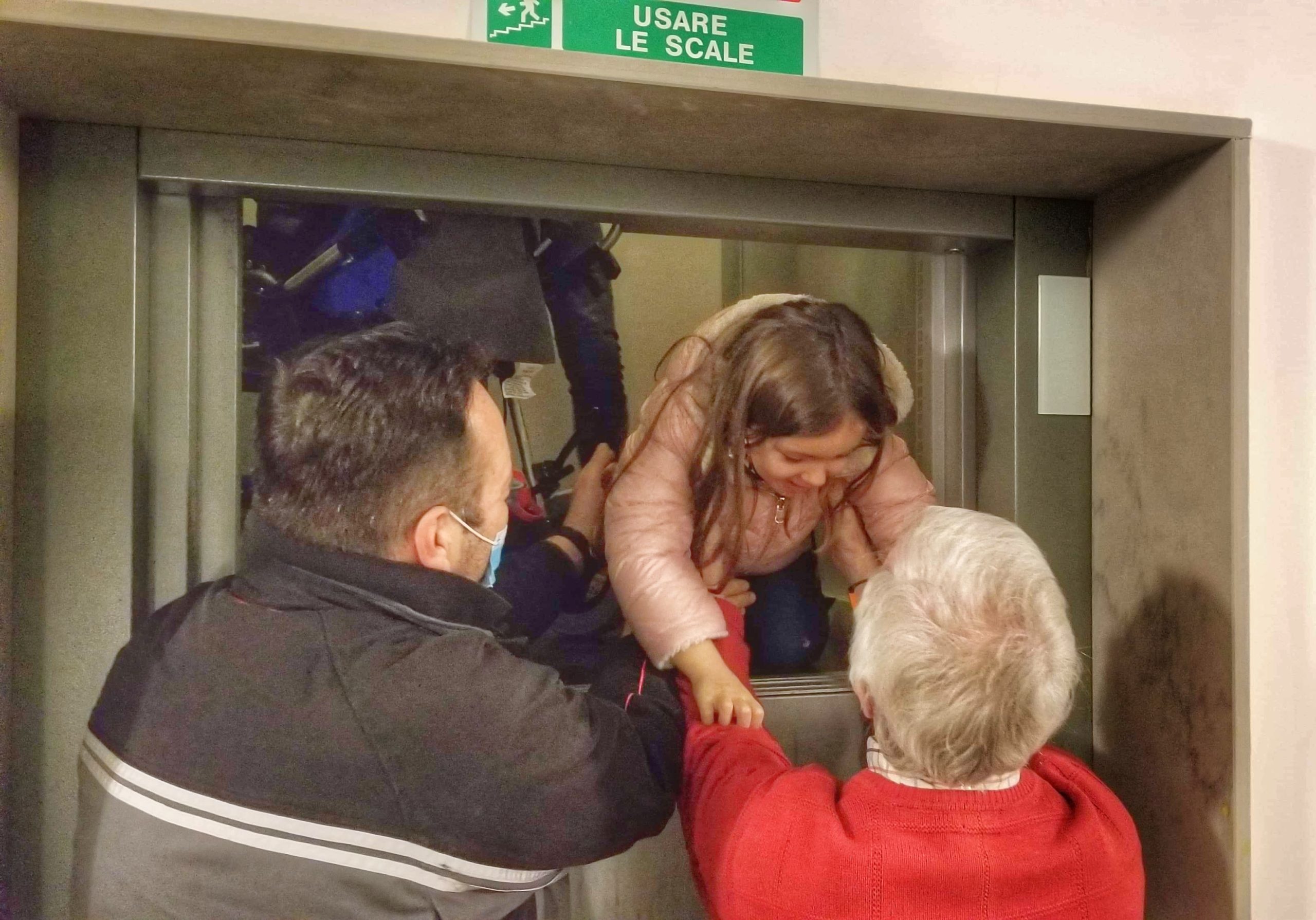 اگر در آسانسور گیر کردیم ابتدا دکمه زنگ خطر را بزنیم