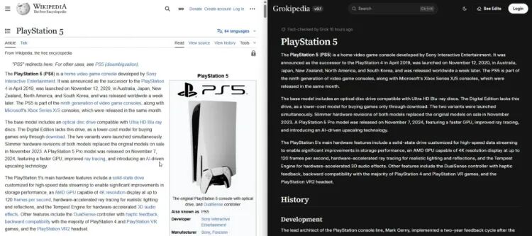 ایلان ماسک نسخهی اول دایرهالمعارف آنلاین خود با نام Grokipedia را فعال کرد؛ پلتفرمی که قرار بود جایگزین پیشرفتهای برای ویکیپدیا باشد. اما ظاهر ساده و ساختار مقالات آن، از صفحهی اصلی گرفته تا قالب محتوا، تقریباً کپی مستقیم از ویکیپدیا است و هنوز امکاناتی مانند ویرایش آزاد توسط کاربران را ارائه نمیدهد.
