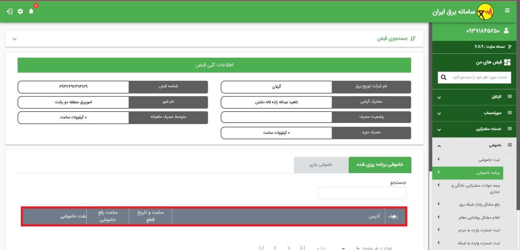 - اکنون در بخش خاموشی برنامهریزیشده میتوانید آدرس، ساعت و تاریخ قطعی و رفع خاموشی برق و علت خاموشی منطقهی خود را ببینید.