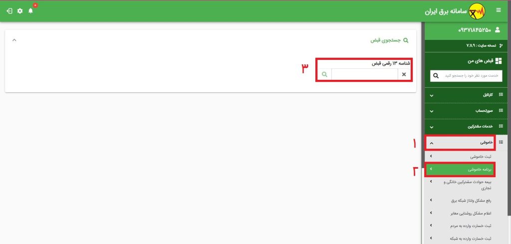 - شناسه ۱۳ رقمی قبض برق خود را وارد کنید و روی ذرهبین بزنید.