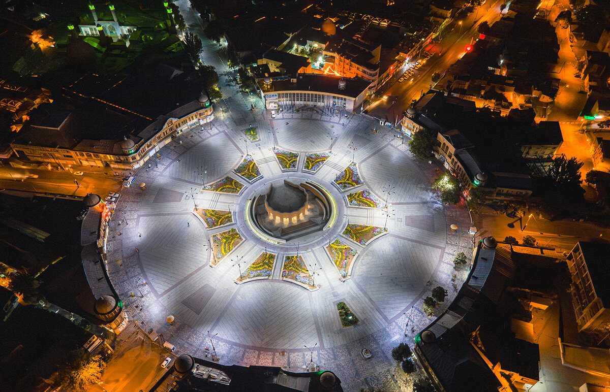 این میدان که سابقه‌ای بیش از نود سال دارد، طرحی منحصر به فرد دارد که شش خیابان اصلی شهر از آن منشعب می‌شوند و معماری تلفیقی ایرانی-اروپایی آن توسط کارل فریش، شهرساز آلمانی، اجرا شده است.