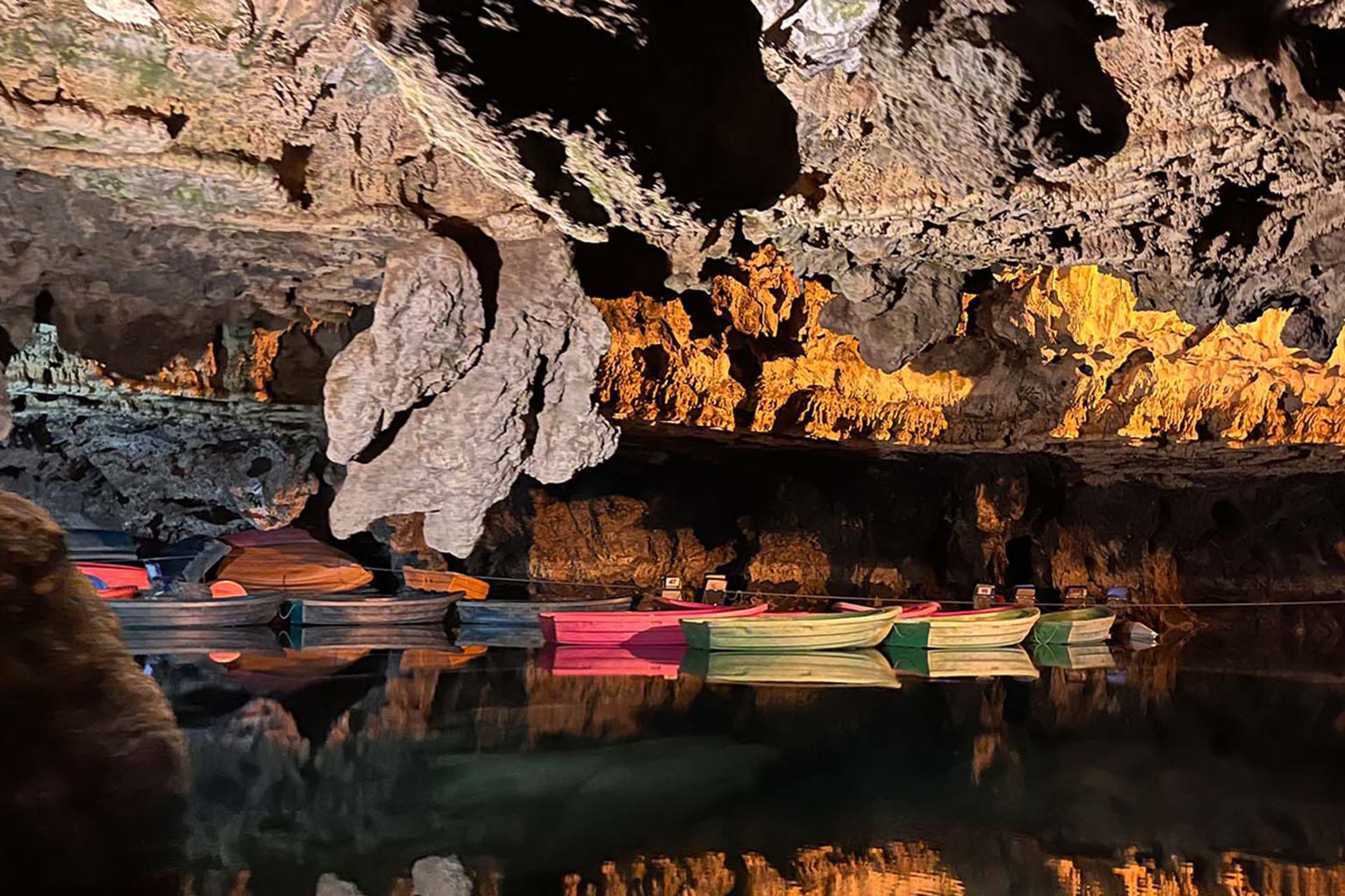 بازدیدکنندگان پس از پوشیدن جلیقه نجات، سوار قایق می‌شوند و مسافت قابل توجهی را در دل کوه به صورت آبی و سپس خشکی طی می‌کنند؛ سنگ‌های آهکی و قندیل‌های هزاررنگ، مسیر عبور را به یکی از خاطره‌انگیزترین تجربیات زندگی تبدیل می‌کند.