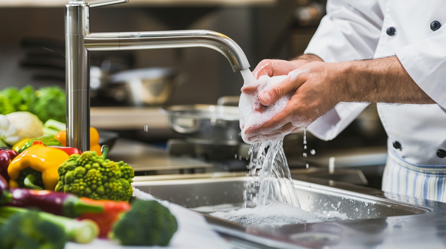 - شستوشوی میوه و سبزی و تفکیک خام/پخته