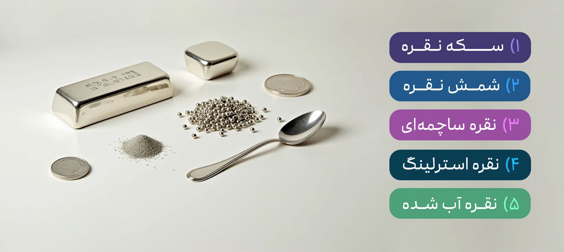 - بین گزینههایی مانند سکه، شمش، نقره آب شده یا زیورآلات انتخاب کنید.