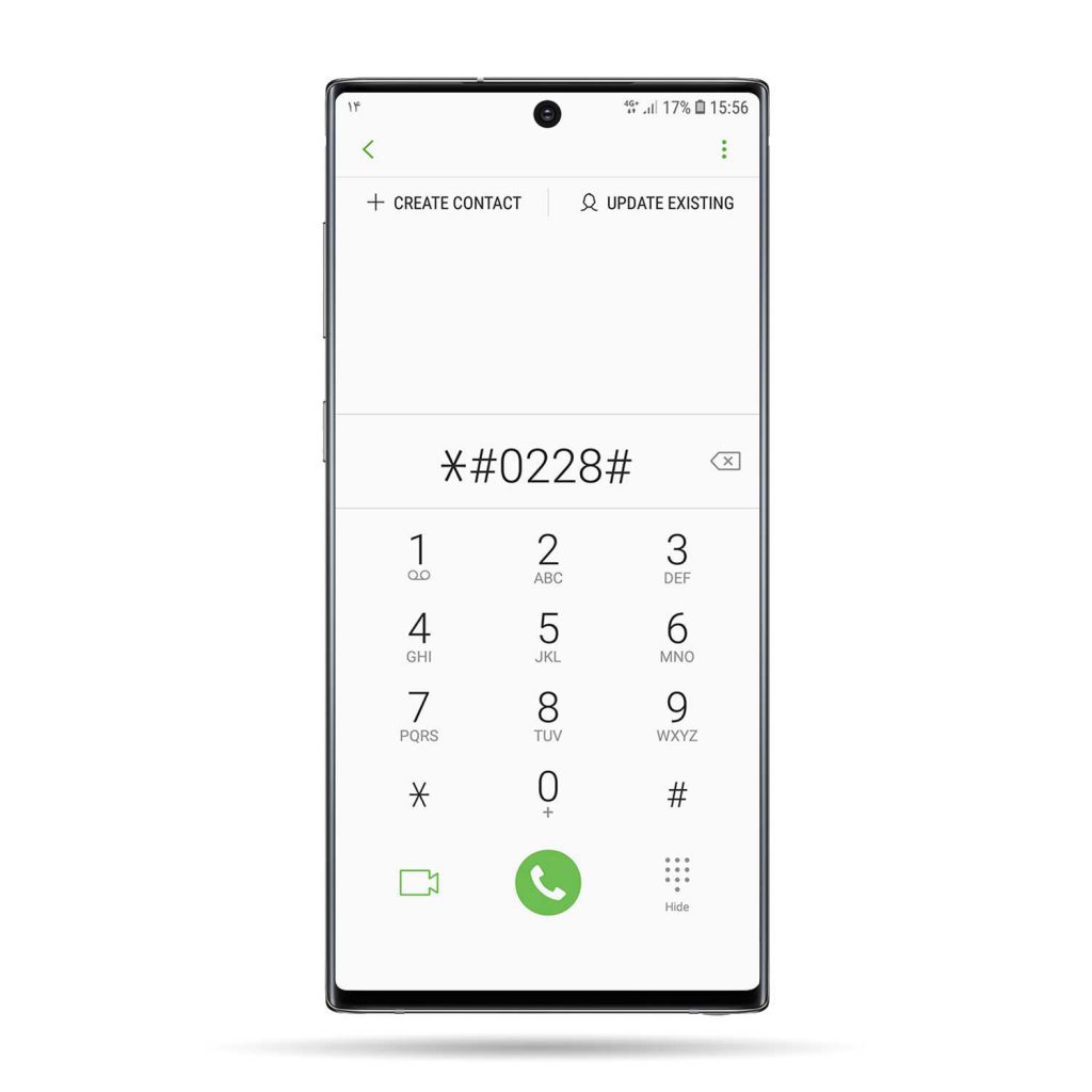 - کد مخفی *#0228# را وارد کرده و دکمه برقراری تماس را فشار دهید.