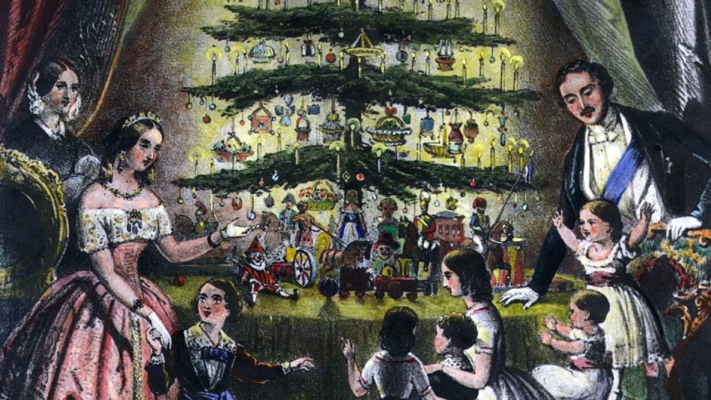 در اواسط قرن نوزدهم، درخت کریسمس پس از سال‌ها مخالفت برخی از شاخه‌های مسیحیت، به انگلستان معرفی شد. گسترش جهانی این سنت مدیون ملکه ویکتوریا و به‌ویژه همسر آلمانی‌تبار او، شاهزاده آلبرت است. پس از انتشار تصویری از خانواده سلطنتی در اطراف یک درخت کریسمس تزیین شده در سال ۱۸۴۸، این آیین به سرعت در سراسر بریتانیا محبوب و فراگیر شد. درخت ویکتوریایی با تزئینات متنوعی مانند اسباب‌بازی‌های کوچک، شمع، آب‌نبات، رشته‌های پاپ‌کورن و روبان‌ها آراسته می‌شد.