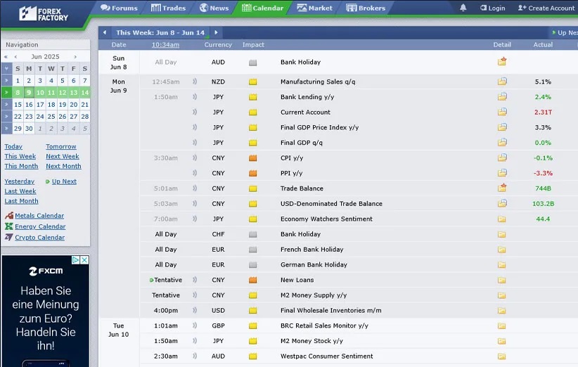 ۱. تقویم اقتصادی (Economic Calendar)